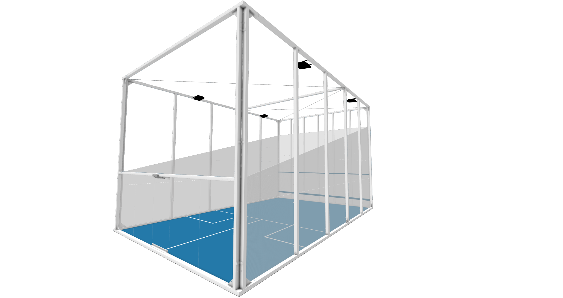 3 courts – sidewalls connected. Floorplan has an equal size as a padel court (20x10m)